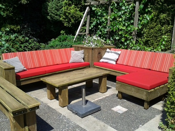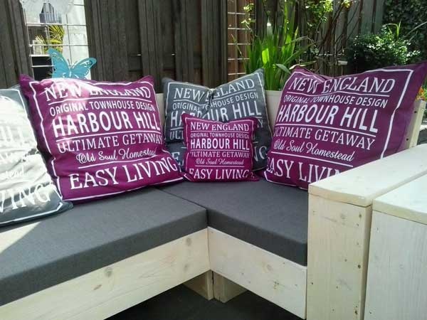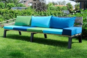 Lekker zitten, hangen, liggen en relaxen op een bestaande of zelfgemaakte tuinbank met de bankkussens van Skoy.